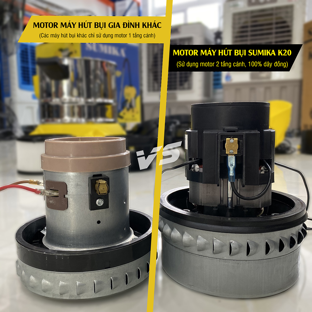 Sumika K20 với dung tích thùng chứa lên đến 20L, hỗ trợ bạn mạnh mẽ trong việc dọn vệ sinh cho những khu vực có diện tích lớn. Thùng chứa được làm từ thép không gỉ có thể chứa hầu hết các loại rác thải, nhất là các hợp chất hóa học hoặc rác thải công nghiệp chứa nhiều thành phần hóa học có thể đẩy mạnh quá trình oxy hóa làm hư hỏng các vật liệu. Máy hút bụi K20 với động cơ motor Ametek của Mỹ và tầng lọc bụi HEPA sẽ đem lại cho bạn hiệu quả hút bụi và làm sạch tốt nhất. Với công suất và dung tích lớn như vậy, bạn có thể hoàn toàn yên tâm trang bị Sumika K20 cho các nhà xưởng không quá lớn, cửa hàng hay khu văn phòng lớn mà không lo máy không có đủ công suất hoạt động.