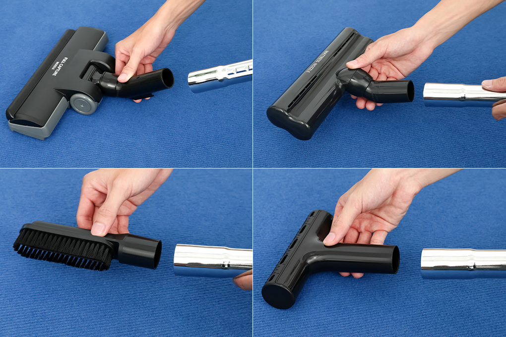 - Đầu hút đệm vệ sinh đệm giường hiệu quả hơn. Đầu hút này loại bỏ bụi trên giường bằng lực hút mạnh. Hãy giảm mức hút khi hút bụi trên giường như vỏ chăn để vải mỏng không bị cuốn vào miệng hút. Tiện ích