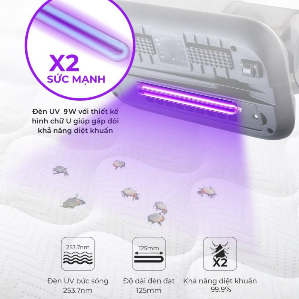 - Đèn diệt khuẩn UV: Loại bỏ 99,9% vi khuẩn, nấm mốc và các tác nhân gây dị ứng trên giường nệm.
