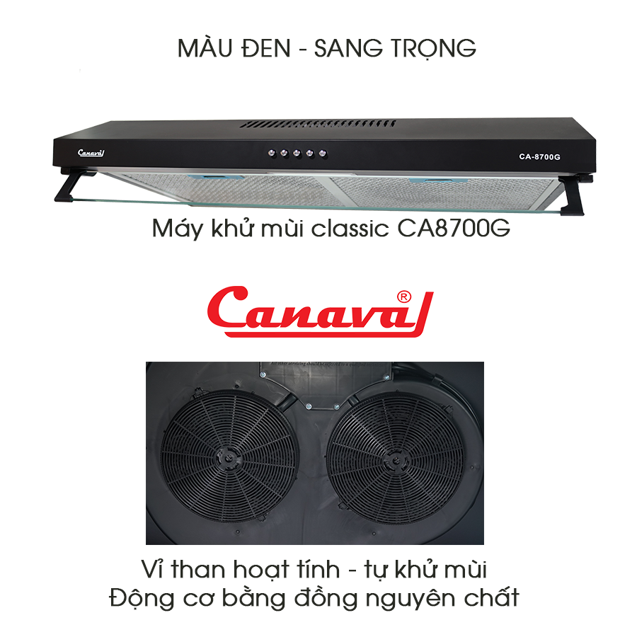 Máy hút mùi cổ điển CANAVAL CA-8700G công suất 500m3/h 160W Màu đen - Hàng chính hãng Máy hút mùi cổ điển sơn đen tĩnh điện cao cấp 02 Động cơ bằng đồng nguyên chất,