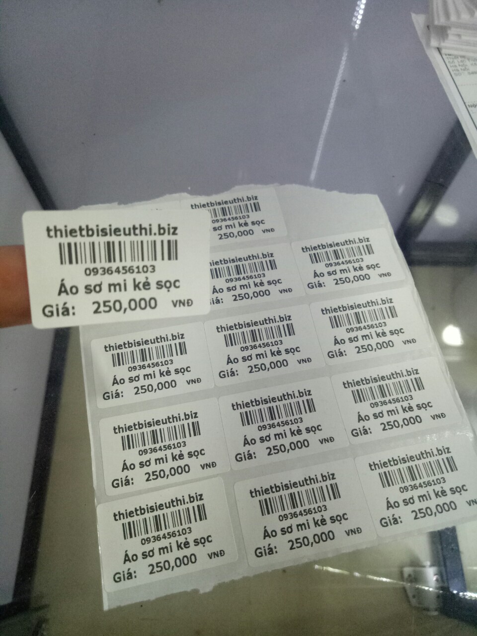 Bán lẻ: in tem nhãn phụ, in tem giá, nhãn sản phẩm cho các mô hình siêu thị mini, tạp hóa, shop thời trang, giày dép....Có thể dùng khổ 105mm22mm (3 tem/1 hàng, 3522mm/1 tem) và khổ tem 70222m (2 tem/1 hàng, 3522mm/1 tem)