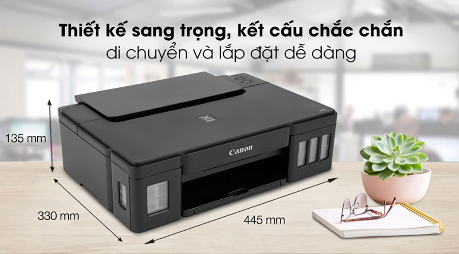 Máy in phun màu Canon Pixma G1010 có khả năng in đơn sắc và màu. Bạn không chỉ có được những bản in chất lượng từ thiết bị này mà còn tiết kiệm được một khối lượng thời gian và chi phí nhờ sự nhanh chóng, tiệt lợi và tính năng 2 trong 1.