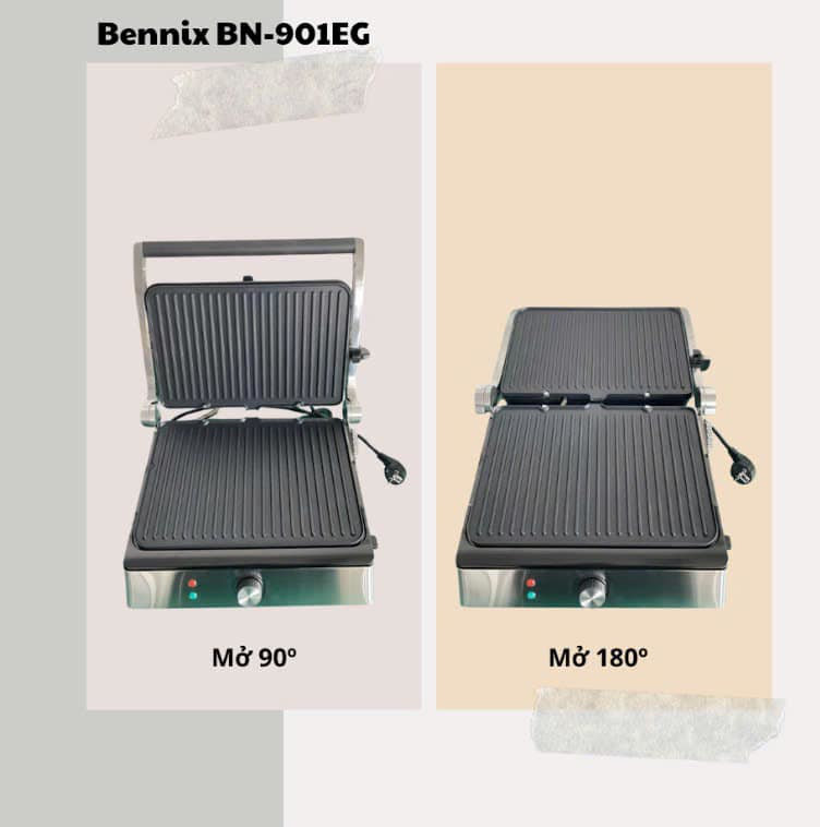 - Kẹp nướng điện Bennix BN-901EG như 1 chiếc máy nướng bánh,tiện dụng nướng các loại bánh mỳ khác nhau, dùng cho nhà hàng hoặc cho quán bánh.
