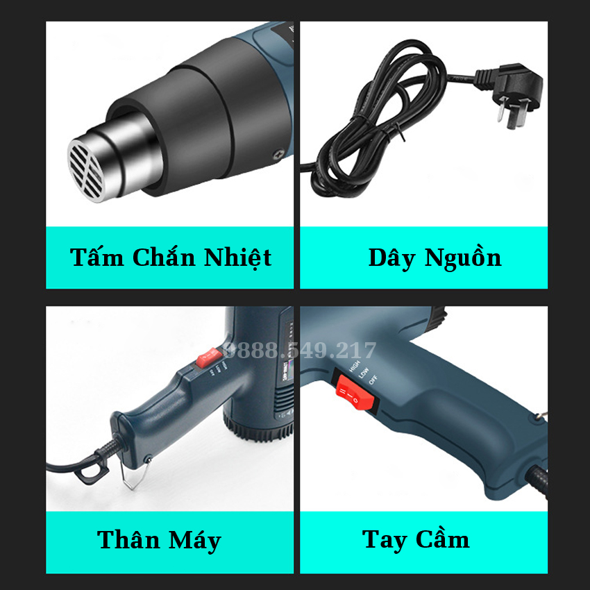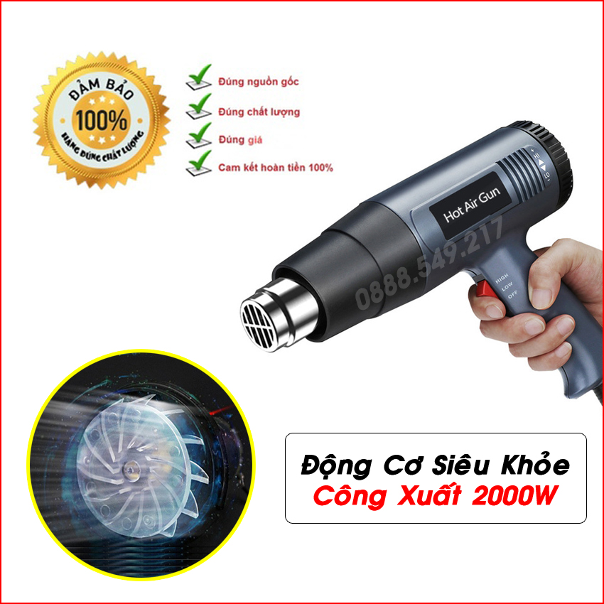 Mua tại TiktokUY TÍN - CHẤT LƯỢNG - GIÁ RẺ ĐẢM BẢO CHẤT LƯỢNG TỐT NHẤT ĐẾN TAY NGƯỜI DÙNG Máy khò hơi nóng 2000w khò nhiệt, bọc màng co giỏ quà tết, dán decal, đóng seal hộp có điều chỉnh nhiệt Sản phẩm được sản xuất theo công nghệ hiện đại, có độ chuẩn xác cao, đảm bảo mang đến hiệu quả công việc tối ưu và thời gian sử dụng lâu dài Được sử dụng nhiều trong gia đình hay xưởng làm việc, mọi công việc sẽ được hoàn thành một cách nhanh chóng và đạt hiệu quả cao. Máy thổi hơi nóng là loại máy rất hữu ích trong công việc như hoà tan vật liệu, kết dính chúng lại với nhau hay loại bỏ những vật liệu khi chúng không còn tác dụng nữa. Thông Số Kĩ Thuật