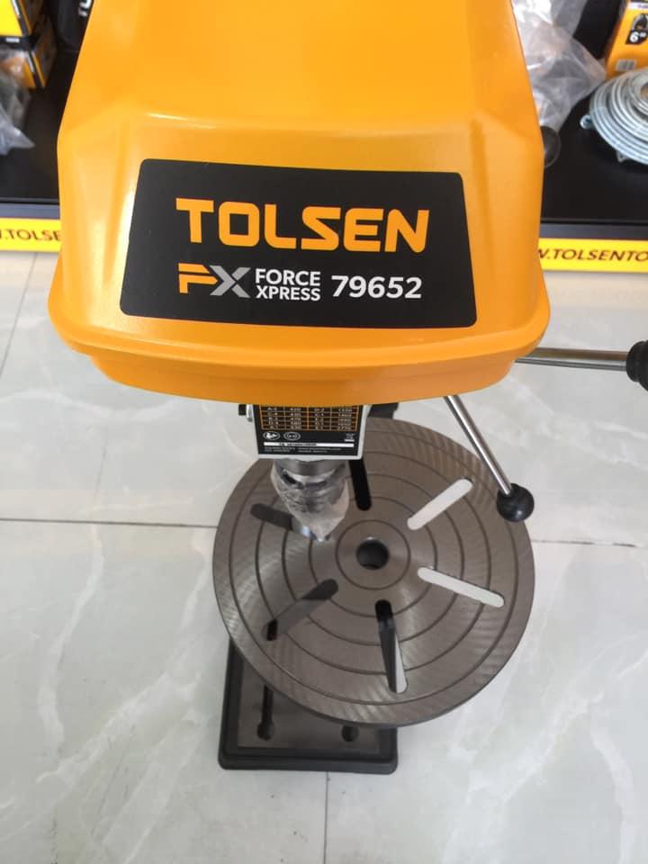 Thông số kĩ thuật -Mã sản phẩm: 79652 -Thương hiệu: TOLSEN -Xuất xứ: Trung Quốc -Công suất đầu vào : 550W -Điện áp đầu vào : 1 pha, 230V -Tần số : 50Hz -Tốc độ không tải : 180 ~ 2770RPM -Hành trình trục chính : 80mm -Trục côn : MT2 -Công suất kẹp : 16mm -Đường kính bàn : Ø290mm -Độ nghiêng của bàn : 45 °trái và phải -Kích thước cơ sở : 420x250mm -Kích thước trục : 450mm -Trọng lượng tịnh : 38kg -Chiều cao máy : 980mm