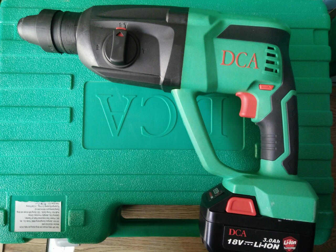 Thương hiệu: DCA Dung lượng pin 18V/4.0Ah x 2 khả năng khoan tối đa gồm khoan sắt: 12mm khoan gỗ: 28mm khoan bê tông: 24mm tần số đập:0-4900 () tốc độ không tải tối đa: 0-1100 v/p trọng lượng: 3.1 kg.