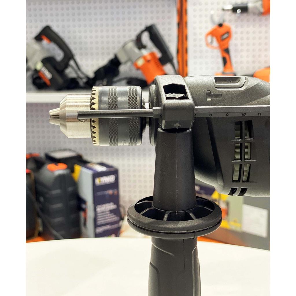 Máy khoan động lực Kynko sử dụng đầu cặp có khóa có thể dùng tới mũi khoan Ø13mm. Vỏ máy được sản xuất từ nhựa cao cấp rất chắc chắn, không biến dạng khi chịu tải lớn. Báng cầm được thiết kế vừa tay, có lớp lót cao su êm và tạo masat tay khi sử dụng. Thân máy còn được đỡ bằng 1 tay cầm phụ lắp thêm tăng độ ổn định, chính xác khi khoan.