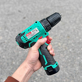 Máy khoan pin có điện thế pin 12V, đường kính mũi khoan là 10mm, chuyên dùng để khoan gỗ, thép và bắt vít. Máy khoan điều chỉnh được tốc độ ở 2 mức: • Mức