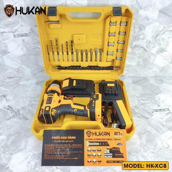 Máy khoan HK- XC8 là một trong những dòng máy khoan sử dụng pin đến từ thương hiệu Hukan, được rất nhiều người ưa chuộng. Vỏ máy được chế tạo bằng nhựa chịu lực, bọc cao su êm, chống va đập. Đồng thời thiết kế nhỏ gọn, đẹp tới từng chi tiết và rất thuận tiện cho việc cầm nắm chống trơn trượt. Sử dụng động cơ không chổi than giúp máy hoạt động tiết kiệm pin và mạnh mẽ.