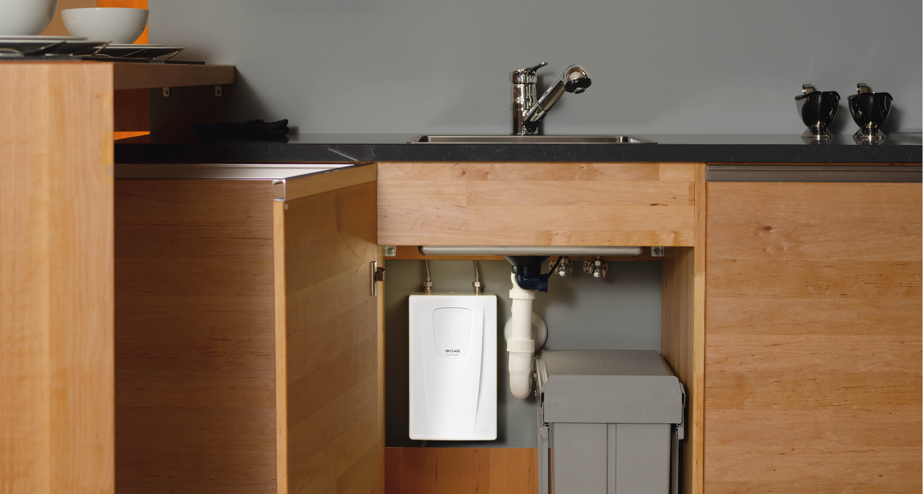 > – Máy nước nóng tức thì được điều khiển điện tử dưới bồn rửa với thiết kế nhỏ gọn và không có sự điều khiển trực tiếp của người dùng, thiết bị sẽ tự động điều chỉnh nhiệt độ dựa trên tốc độ dòng chảy và nhiệt độ nước đầu vào để có nhiệt độ nước nóng đầu ra ổn định.