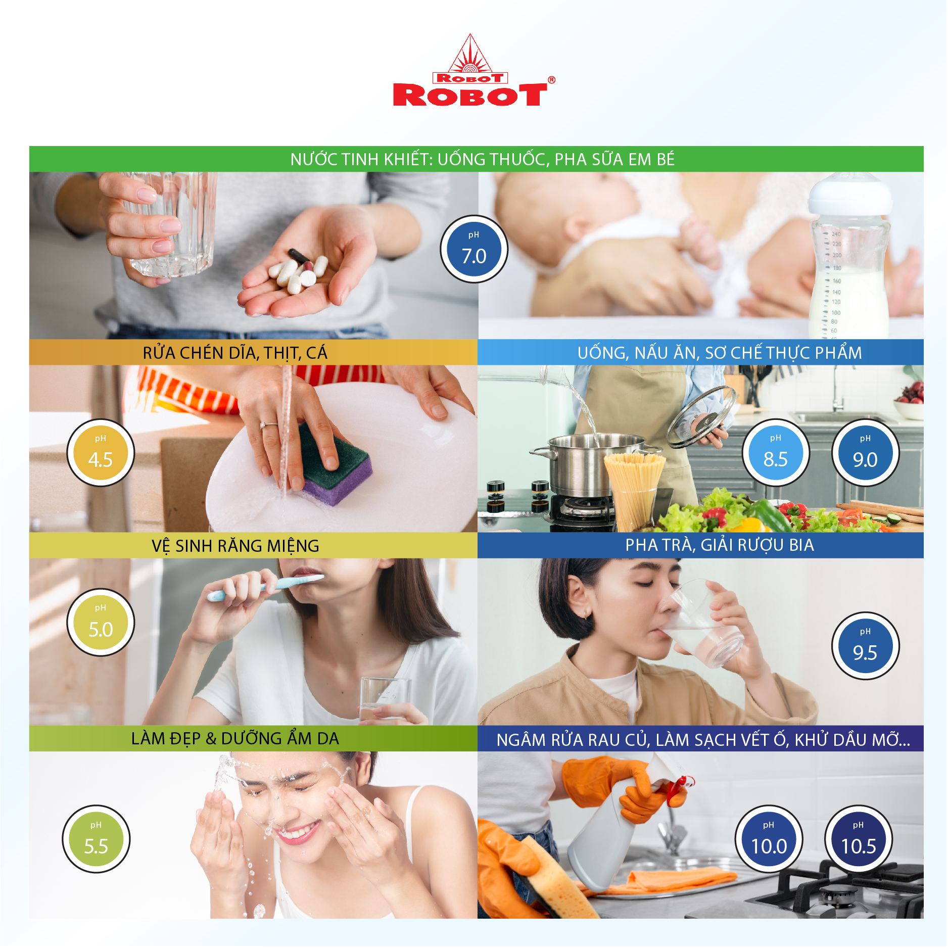 Máy lọc nước điện giải ion kiềm ROBOT - Đạt Thiết bị Y Tế Châu Âu, giải pháp nâng tầm cuộc sống