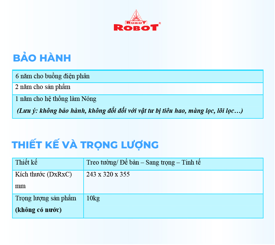 ️ Với mong muốn nhiều gia đình Việt có thể sử dụng nước điện giải iON kiềm với chi phí hợp lý để bảo vệ sức khỏe, sắc đẹp & nâng cao chất lượng cuộc sống, ROBOT mang đến sản phẩm “Chất lượng Quốc tế - Giá thành Việt Nam”, phù hợp với mức sống của nhiều người. Tiết kiệm cho người tiêu dùng đến hơn một nửa chí phí so với máy nhập khẩu chỉ từ 30 – 50%, nhưng sở hữu nhiều ưu điểm, tính năng vượt trội, chất lượng cao.