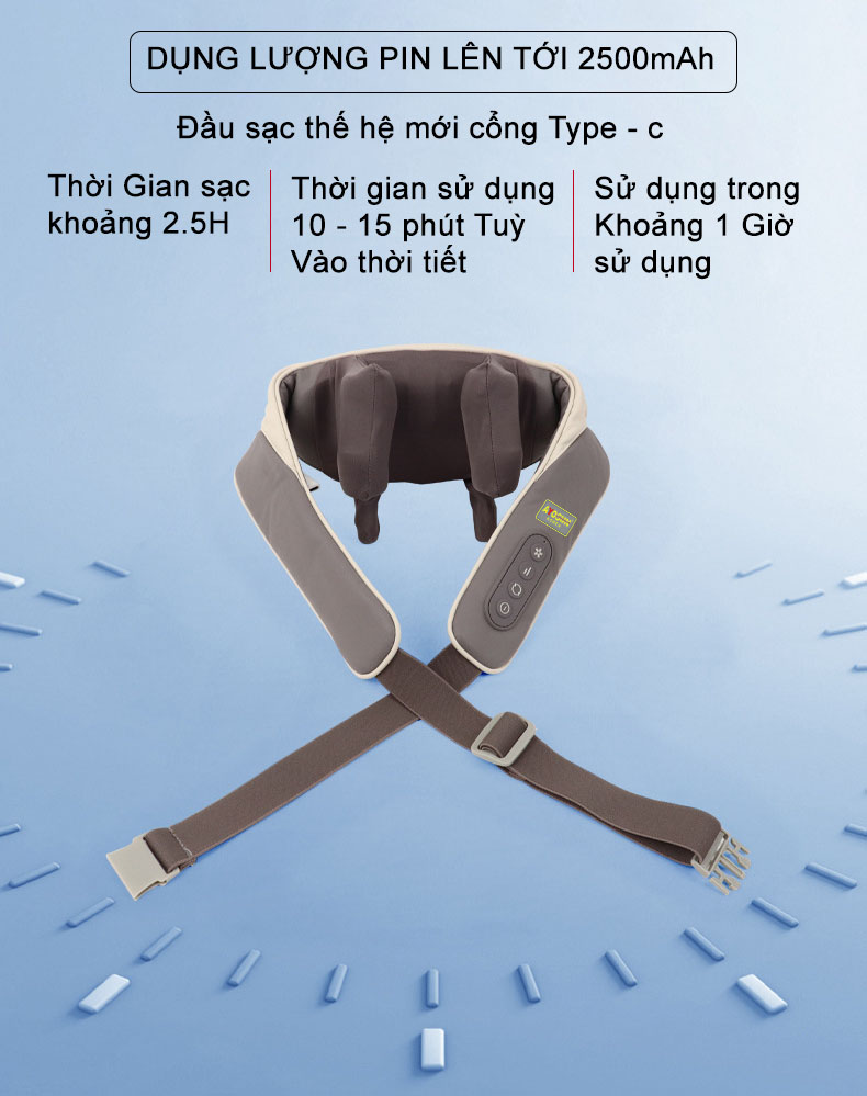 » Thiết kế quai đeo qua vai chắc chắn và tiện nghi giúp người dùng có thể linh hoạt sử dụng tại nhiều thời điểm khác nhau trong ngày, dễ dàng vừa mát xa vừa thực hiện các công việc nhẹ nhàng khác