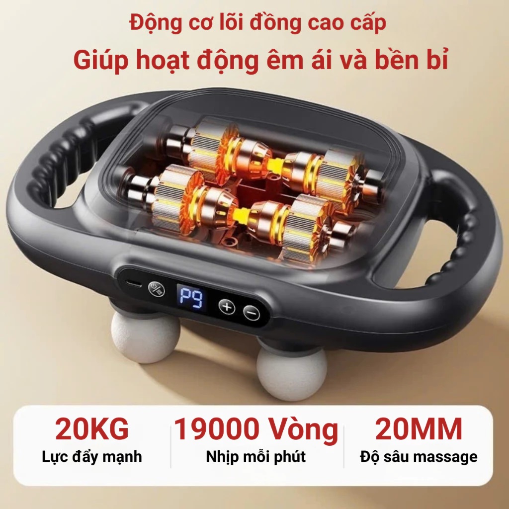 • Massage sâu tới 20mm tác động mạnh mẽ làm giảm hiệu quả tình trạng mệt mỏi và đau nhức cơ, phù hợp để mát xa ở vai, lưng, chân, bụng và bắp tay.