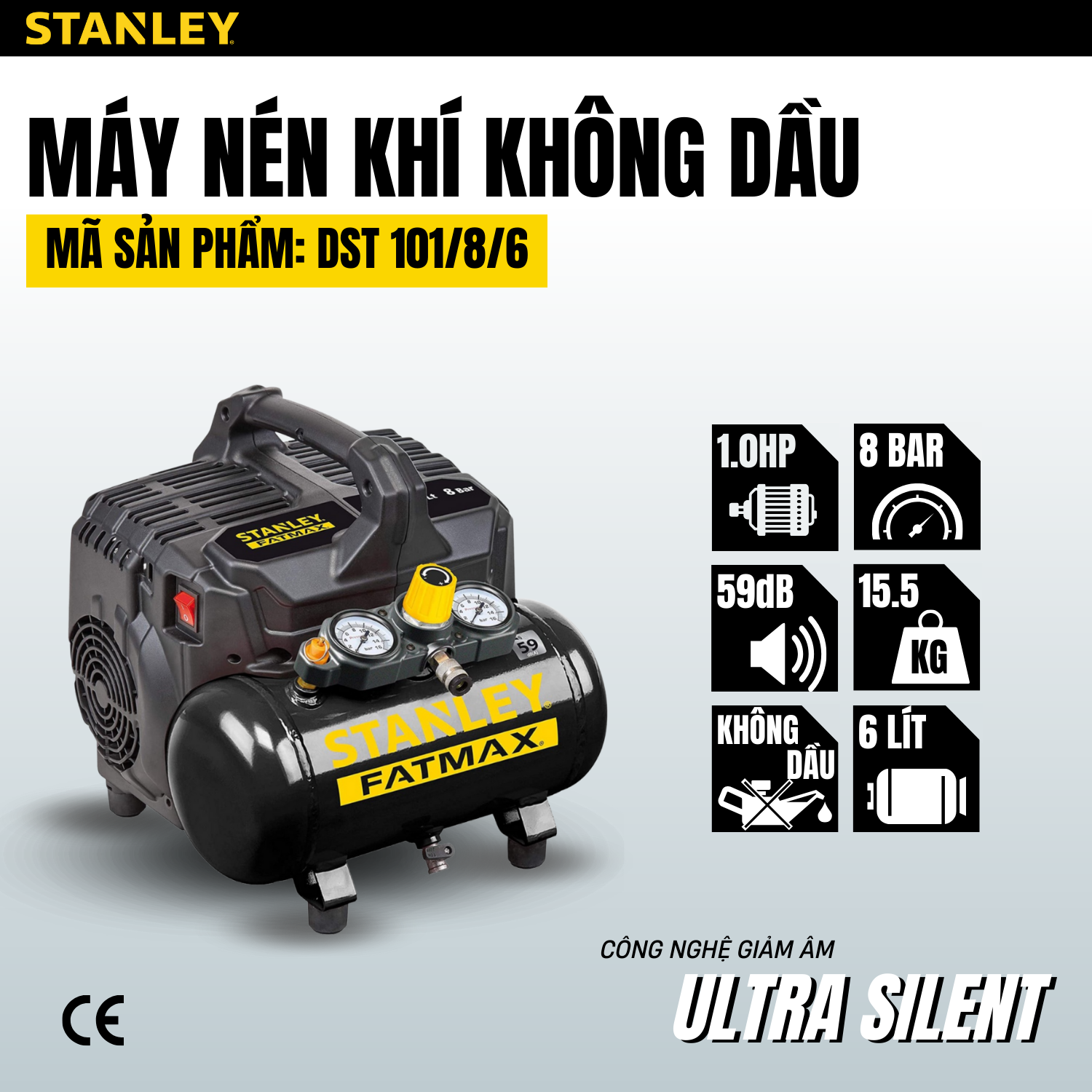 Cơ Động, Siêu Êm, Chỉ Có Thể Là Máy Nén Khí Không Dầu 6L Stanley Fatmax DST101/8/6