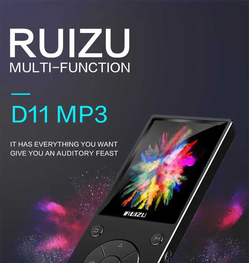 - Máy nghe nhạc RUIZU D19 thiết kế nhỏ gọn, kiểu dáng thể thao, màn hình màu TFT 2,4 inch cảm ứng mang lại hình ảnh sắc nét, kết nối bluetooth 5.0 ổn định trong phạm vi