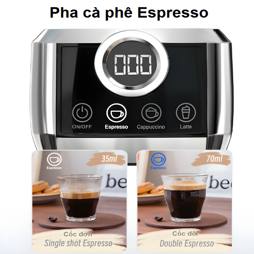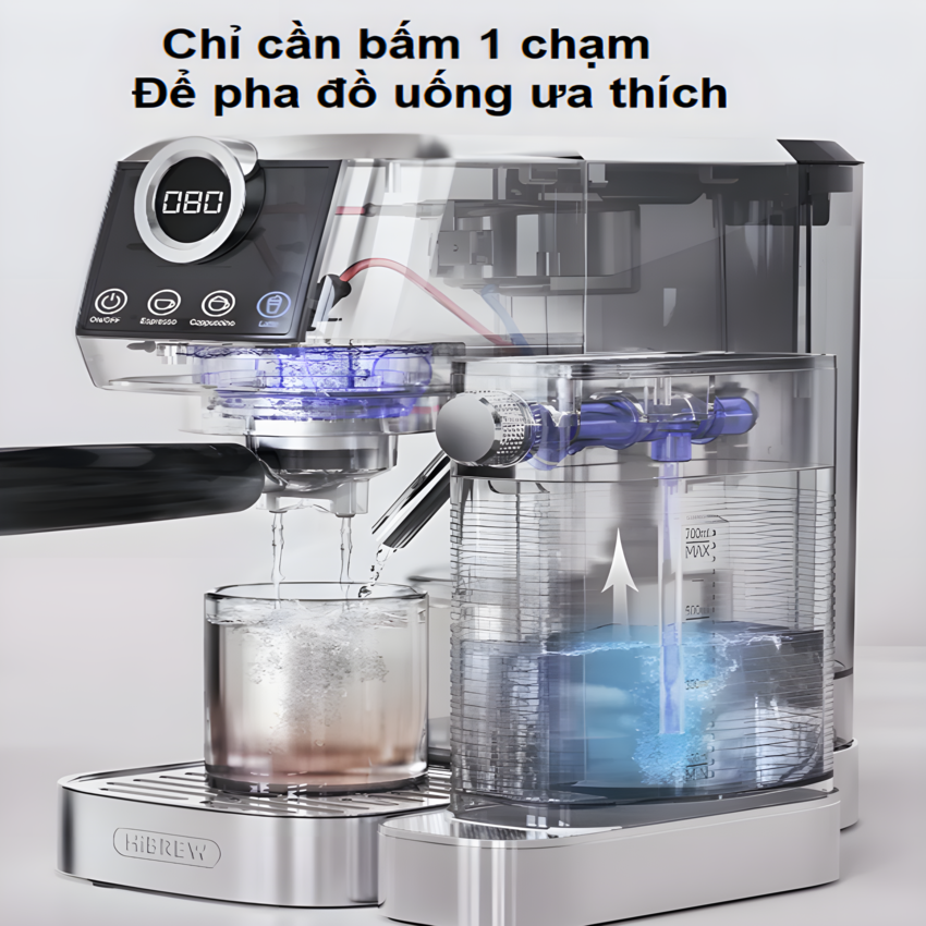 Máy pha cà phê Espresso bán tự động Espresso, Latte, Cappuccino thương hiệu HiBREW H13A