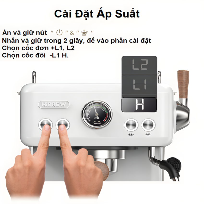 - Máy pha cà phê Espresso chuyên nghiệp HiBREW H10 Plus có công suất hoạt động là 1230W, áp suất 20 bar cho phép pha tối đa 25-30 ly/ngày. Nhờ đó đáp ứng được nhu cầu sử dụng tại các văn phòng, quán cà phê, khách sạn...