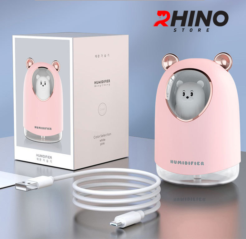 Máy phun sương tạo ẩm hình con vật Rhino H904 dung tích 300ml, nhỏ gọn, không gây tiếng ồn, tích hợp đèn ngủ RGB nhiều màu, Hàng chính hãng Máy phun sương tạo ẩm là một thiết bị rất cần thiết đối với mọi gia đình trong thời tiết khô hanh, độ ẩm thấp với tác dụng chính là cấp thêm độ ẩm trong không khí. Từ đó giúp da không bị mất nước, khô nứt nẻ đặc biệt vùng môi và da mặt tạo ra môi trường sống thoải mái và dễ chịu nhất, không còn mặc cảm khi tiếp xúc với mọi người. Khi kết hợp với tinh dầu sẽ tạo ra bầu không khí dễ chịu, tránh nấm mốc và côn trùng ruồi muỗi (không nên lạm dụng và phải chọn đúng tinh dầu chất lượng tốt)