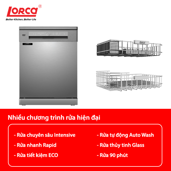- Bạn đang tìm kiếm một chiếc máy rửa bát cao cấp, hiệu quả và tiết kiệm năng lượng? Máy rửa bát 13 bộ LORCA TA 918DWS sẽ là lựa chọn tuyệt vời, mang lại sự tiện nghi và sang trọng cho không gian bếp của bạn. Đặc điểm nổi bật: