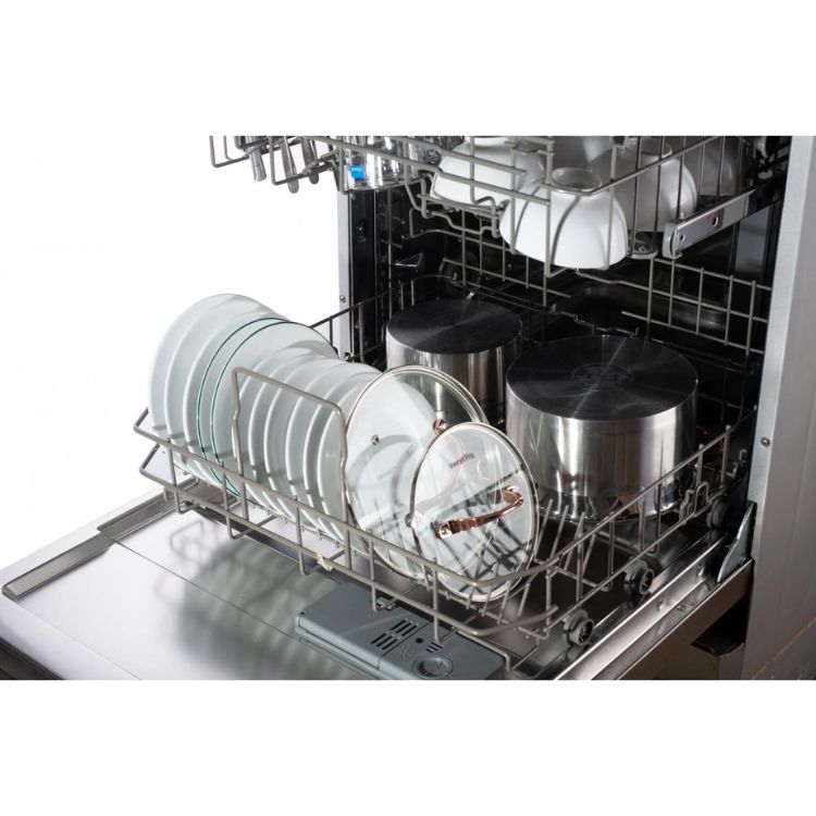 Máy rửa bát độc lập hoặc âm tủ 2 khay chứa cơ động + 1 khay đề thìa, đũa, dĩa, dao, kéo Tiết kiệm đến gần 50% năng lượng và thời gian, ngoài ra giúp