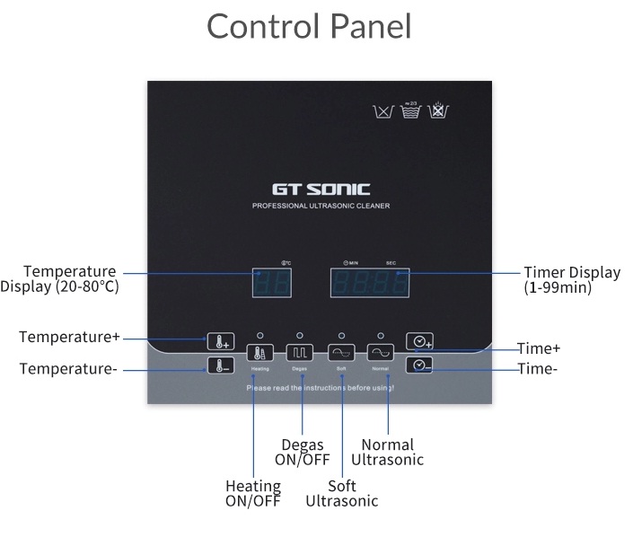 Có thể cài đặt thời gian rửa bằng kỹ thuật số, hiển thị thời gian theo phút:giây cũng như bật/tắt chế độ gia nhiệt tùy vào nhu cầu sử dụng