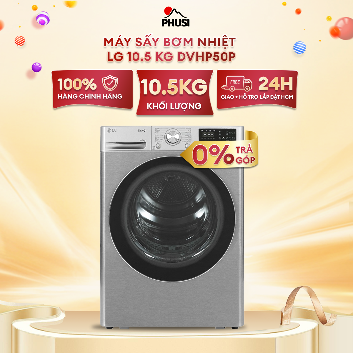 ✨Máy sấy LG DVHP50P DUAL Inverter Heat Pump 10,5kg (xám) - Hàng chính hãng (chỉ giao HCM)
