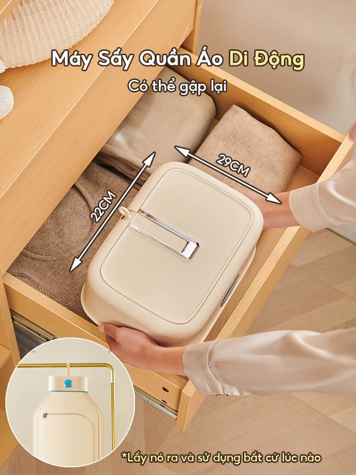 - Sản phẩm có kích thước nhỏ, dễ dàng mang theo, có thể sấy khô nhiều bộ quần áo cùng lúc.