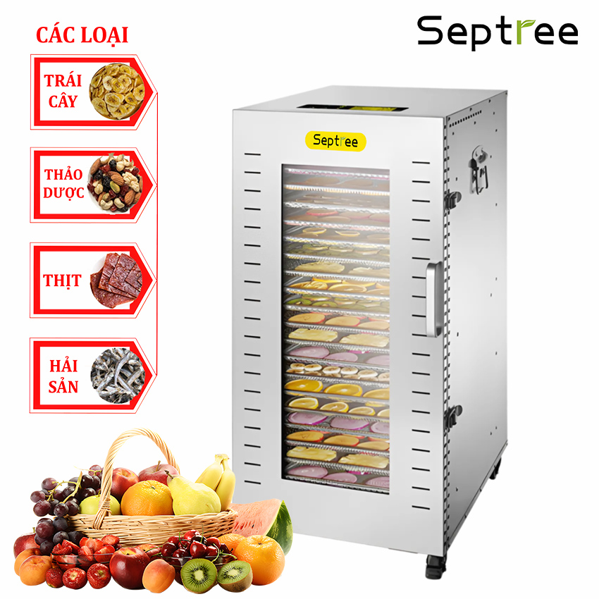 Máy sấy thực phẩm chuyên nghiệp dung tích 100 lít, 16 khay thương hiệu Mỹ cao cấp Septree ST-02 Septree là thương hiệu nổi tiếng tại Mỹ và Châu Âu, Septree chuyên sản xuất các mặt hàng điện tử