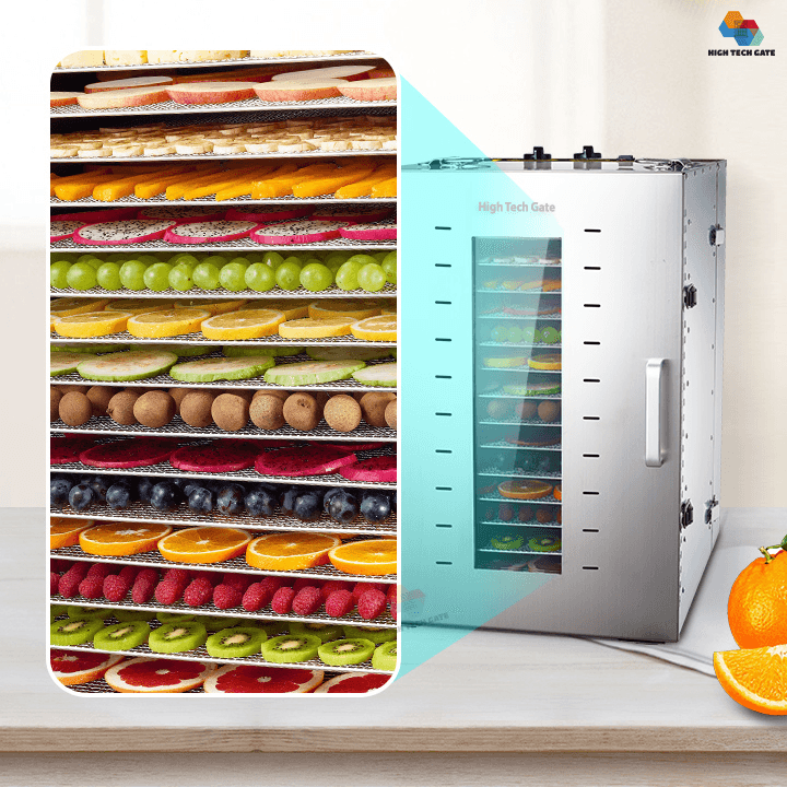 Máy Sấy Thực Phẩm Inox HTG - ST02 - 16 Khay SS304 Chống Rỉ Sét, Chống Rơi, Dung Tích Lớn 96 Lít