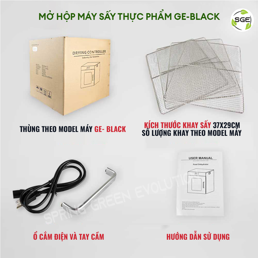 Máy Sấy Thực Phẩm Ge-Black- Đầy Đủ Chức Năng, Đủ kích thước 6-32 khay. Chính Hãng SGE Thái Lan