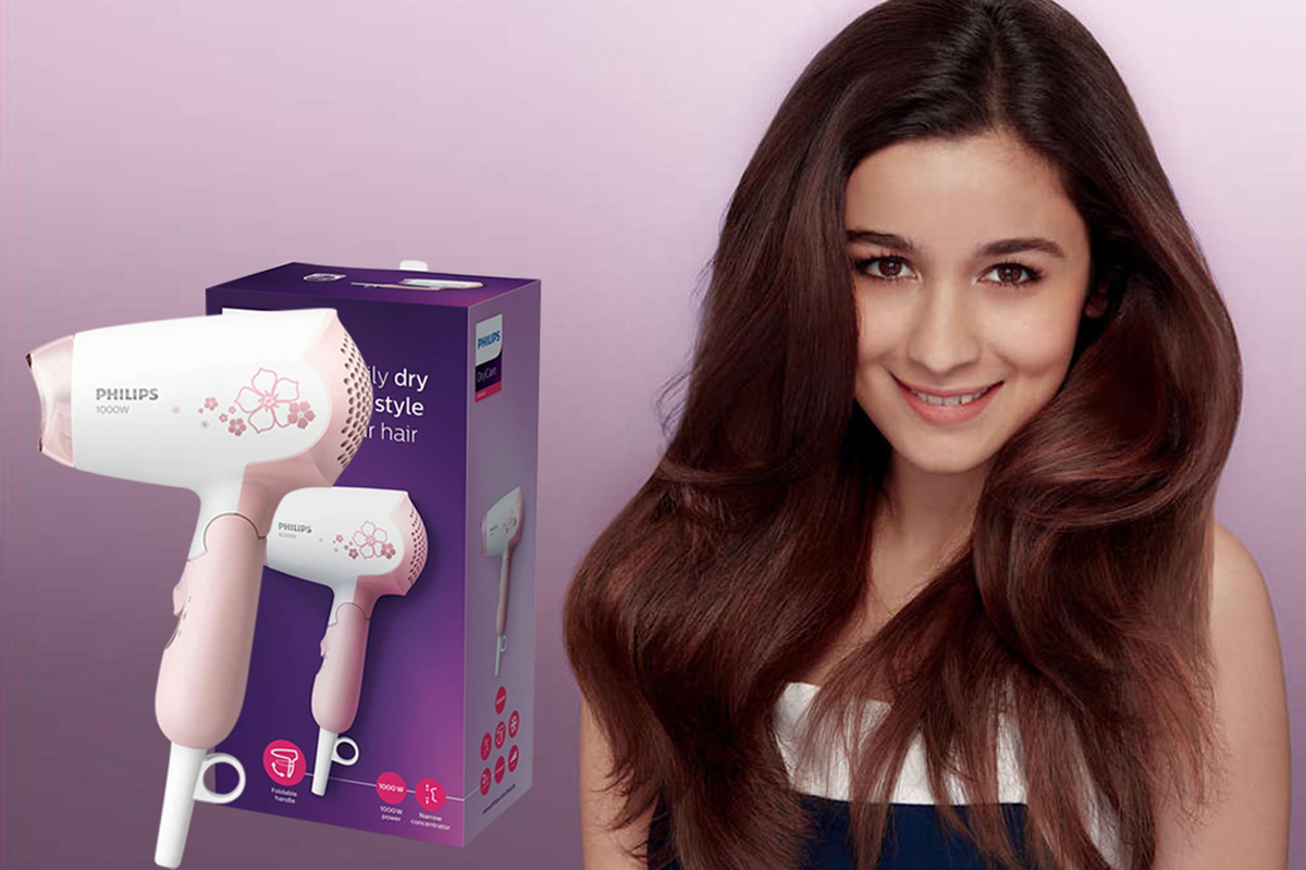 - Máy sấy tóc Philips 1000W tạo ra luồng khí và công suất sấy tối ưu, mang lại mái tóc đẹp hàng ngày.