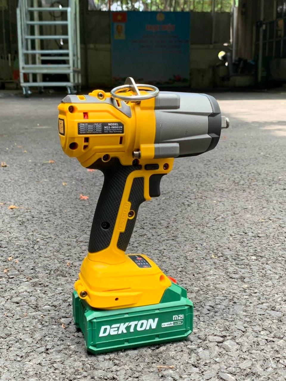Máy siết bulong Dekton M21-IW801N cũng có pin dung lượng lớn và sạc nhanh. Máy siết bulong sử dụng pin lithium-ion 21V, có dung lượng 4.0 Ah, cho thời gian làm việc lâu dài và ổn định. Máy siết bulong cũng có sạc pin thông minh, có thể sạc pin đầy trong vòng 1 giờ, tiết kiệm thời gian và năng lượng.