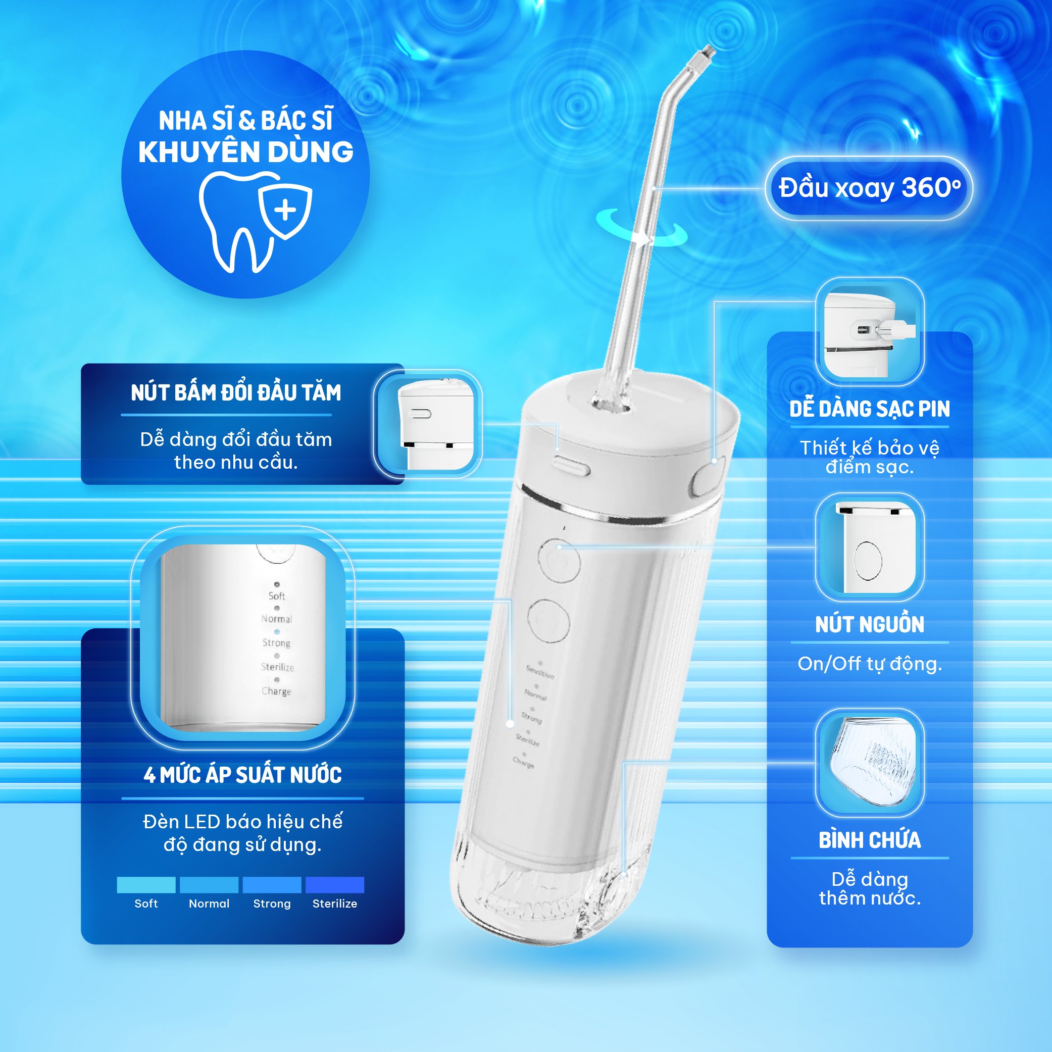 Ưu điểm và tính năng máy tăm nước Chido WF-238