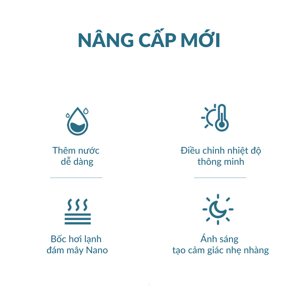 – Công nghệ phun sương siêu âm cho phép hoạt động gần như không gây tiếng ồn và tạo ra hạt sương siêu nhỏ mức micro – Công nghệ bình sạch diệt khuẩn giúp bảo