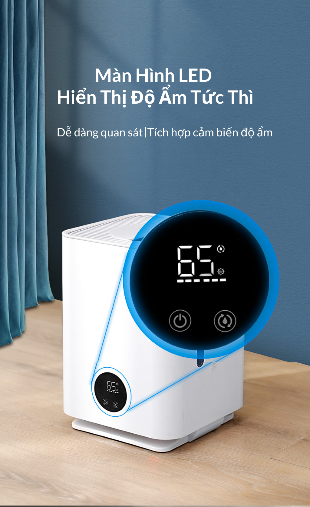 Cung cấp độ ẩm lí tưởng cho sức khỏe Phù hợp với các không gian lên đến 210m² Kết hợp hoàn hảo với điều hòa nhiệt độ Bảo vệ đồ nội thất, nhạc cụ, các