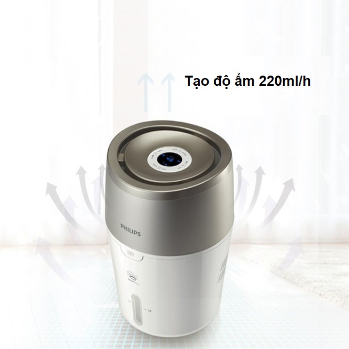 - Những hạt nước với kích cỡ nano nhờ công nghệ xông hơi NanoCloud sẽ giúp giảm đi 99% vi khuẩn trong phòng. -️ Không khí ẩm được phân bổ 360 độ đồng đều và khắp căn phòng. -️ Máy làm ẩm của Philips cho phép bạn lựa chọn độ ẩm từ 40, 50 và 60% cho sự thoải mái tối đa. -️ Chế độ tự động sử dụng cảm biến số để liên tục theo dõi độ ẩm. Nó điều chỉnh việc tạo độ ẩm lên và xuống khi cần thiết, đảm bảo độ ẩm luôn ở chế độ đã được chọn trước.