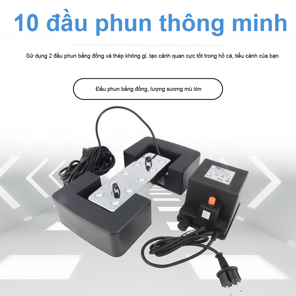 Máy tạo khói hồ cá Koi Loại Lớn 10 đầu, 36V cao cấp có phao nổi Máy tạo khói 10 đầu với lượng khói ra nhiều, đẹp mắt phù hợp những nhu cầu sử dụng : tạo khói cảnh quan, tạo khói hồ cá Koi, tạo khói tiểu cảnh, tạo sương cảnh quan hoặc giữ ẩm cho môi trường xung Thông số sản phẩm: