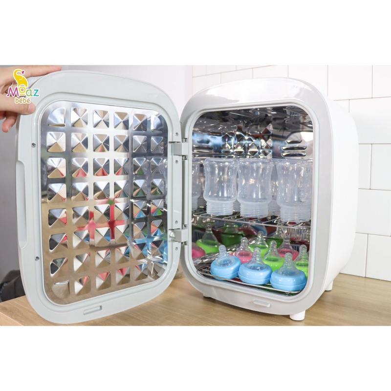 Máy tiệt trùng UVC ION Moaz BéBé MB 072 kết hợp công nghệ tiệt trùng bằng 16 đèn hạt UVC với công nghệ tiệt trùng bằng i-on mới, tăng hiệu quả tiệt trùng gấp 2 lần. Máy tiệt trùng UVC ION Moaz còn tích hợp 6 tính năng cùng lúc: chế độ ban đêm, auto, bảo quản 24h, sấy khô, tiệt trùng, chế độ im lặng…. giữ cho đồ dùng của bé luôn sạch vi khuẩn.