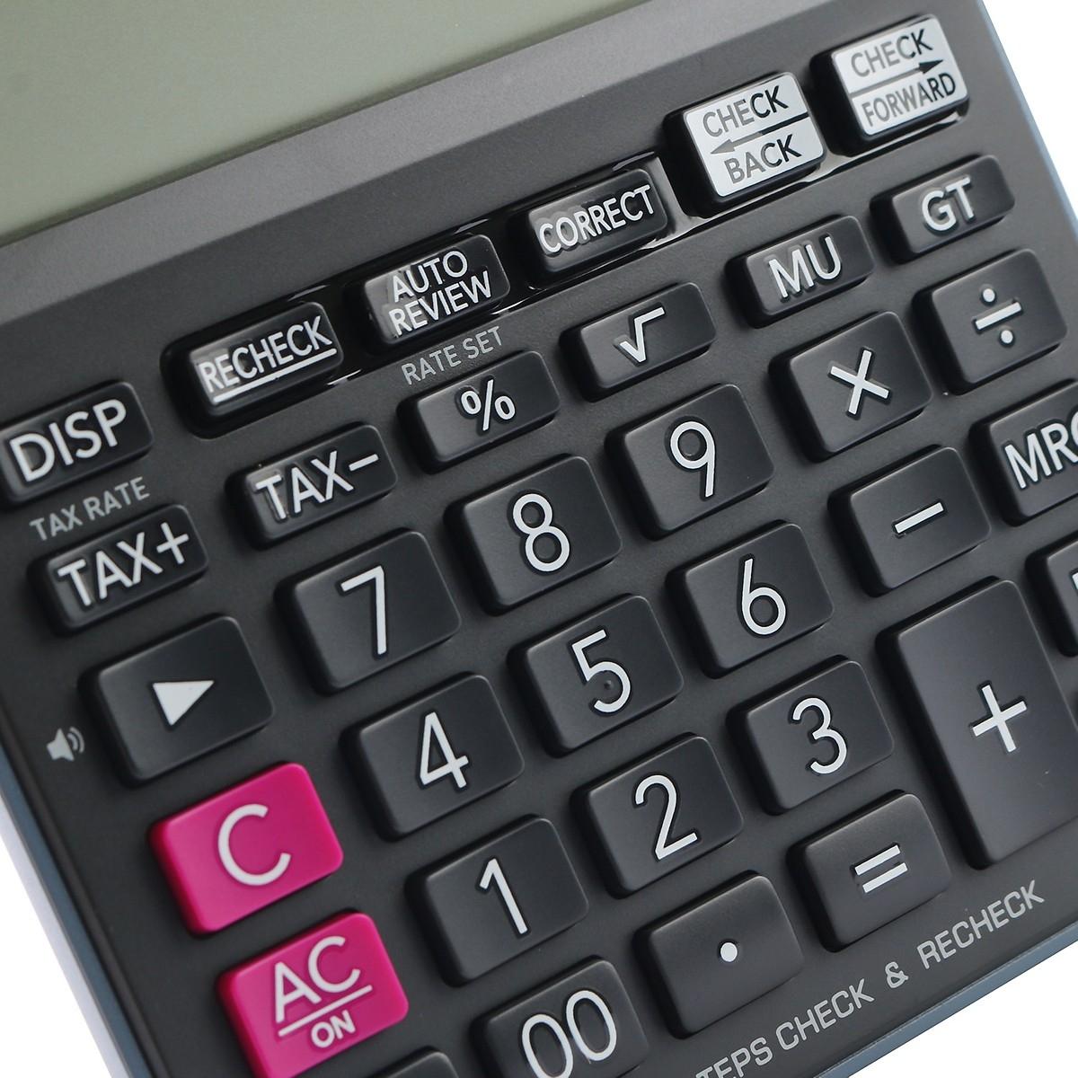 Máy tính kiểm tra Casio MJ-120Plus BK. Dòng máy tính có thể kiểm tra lại tối đa 300 phép toán, phù hợp cho nhân viên văn phòng, kế toán hay cửa hàng kinh doanh với