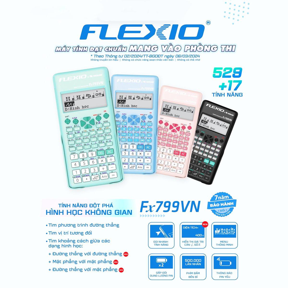 Máy tính khoa học Flexio là chiếc máy tính có nhiều tính năng nhất, lên tới 529 tính năng trong đó bổ sung 17 tính năng nổi bật :