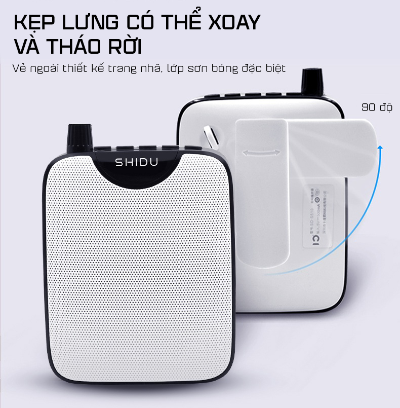 - Máy trợ giảng Shidu SD-S258 với thiết kế nhỏ gọn, công suất lớn 10W kết hợp hệ thống loa kép cho giọng nói trung thực, thời gian sử dụng lên đến 15 giờ phù hợp cho