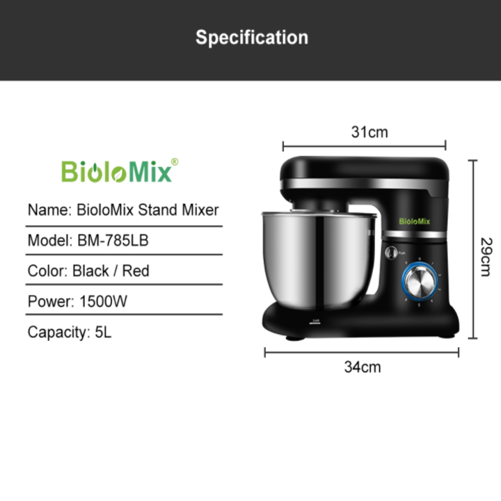 Mua tại TiktokMáy trộn bột và đánh trứng 5 lít, 1500W BioloMix BM785LB có 6 mức độ vận hành Công suất: 1500W - HÀNG CHÍNH HÃNG Thiết kế chắc chắn, hiện đại và sang trọng