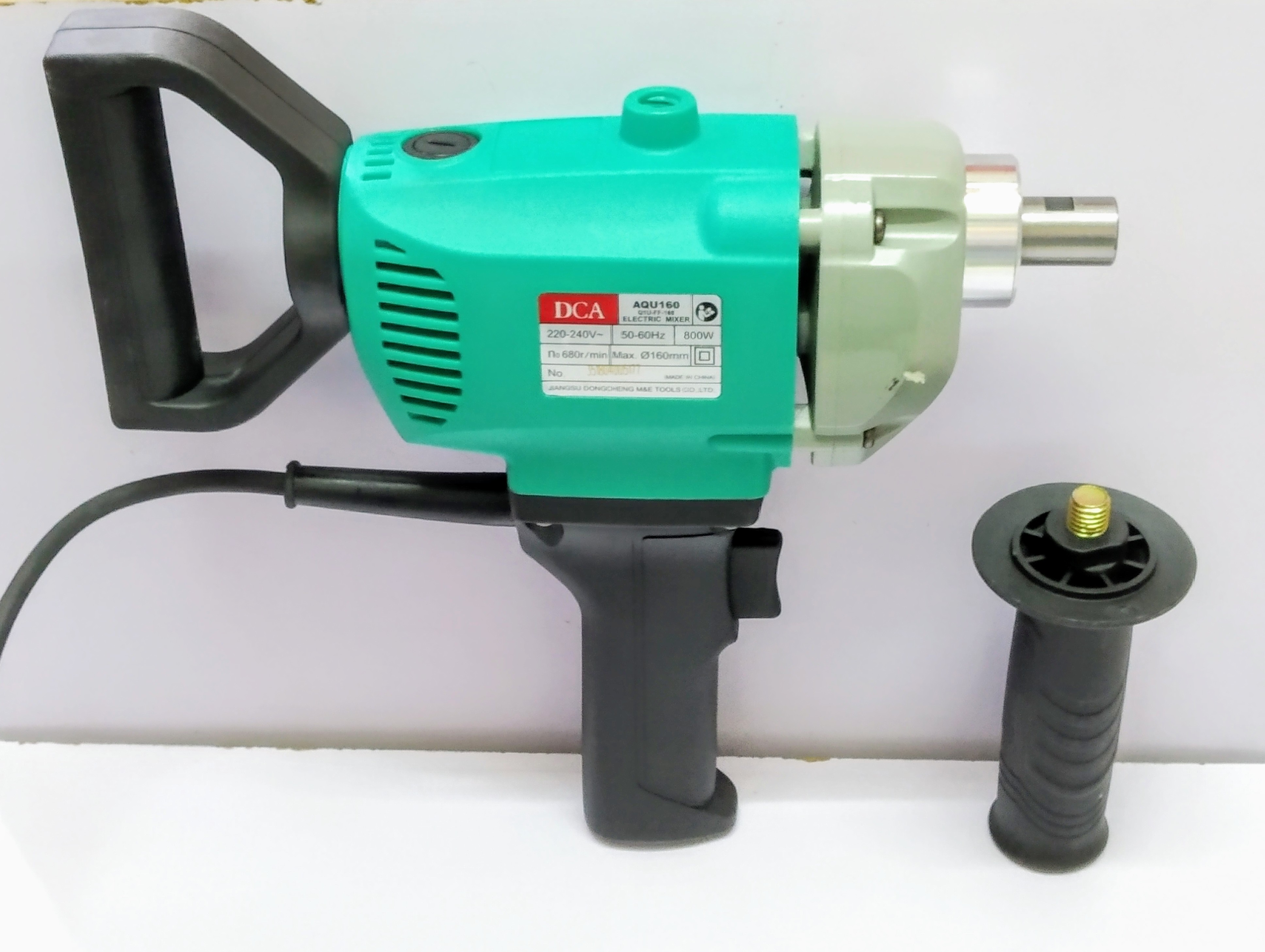 Máy trộn sơn DCA AQU160 có kiểu dáng nhỏ gọn, dễ dàng mang theo đến các công trình. Báng cầm thiết kế vân chống trơn trượt, đồng thời trang bị công tắc ngay phía trên, giúp thao tác thuận tiện. Trục khuấy dài, làm bằng chất liệu cao cấp chống gỉ và thiết kế đầu giống như chiếc máy đánh trứng, giúp trộn sơn đều và có chất lượng cao.