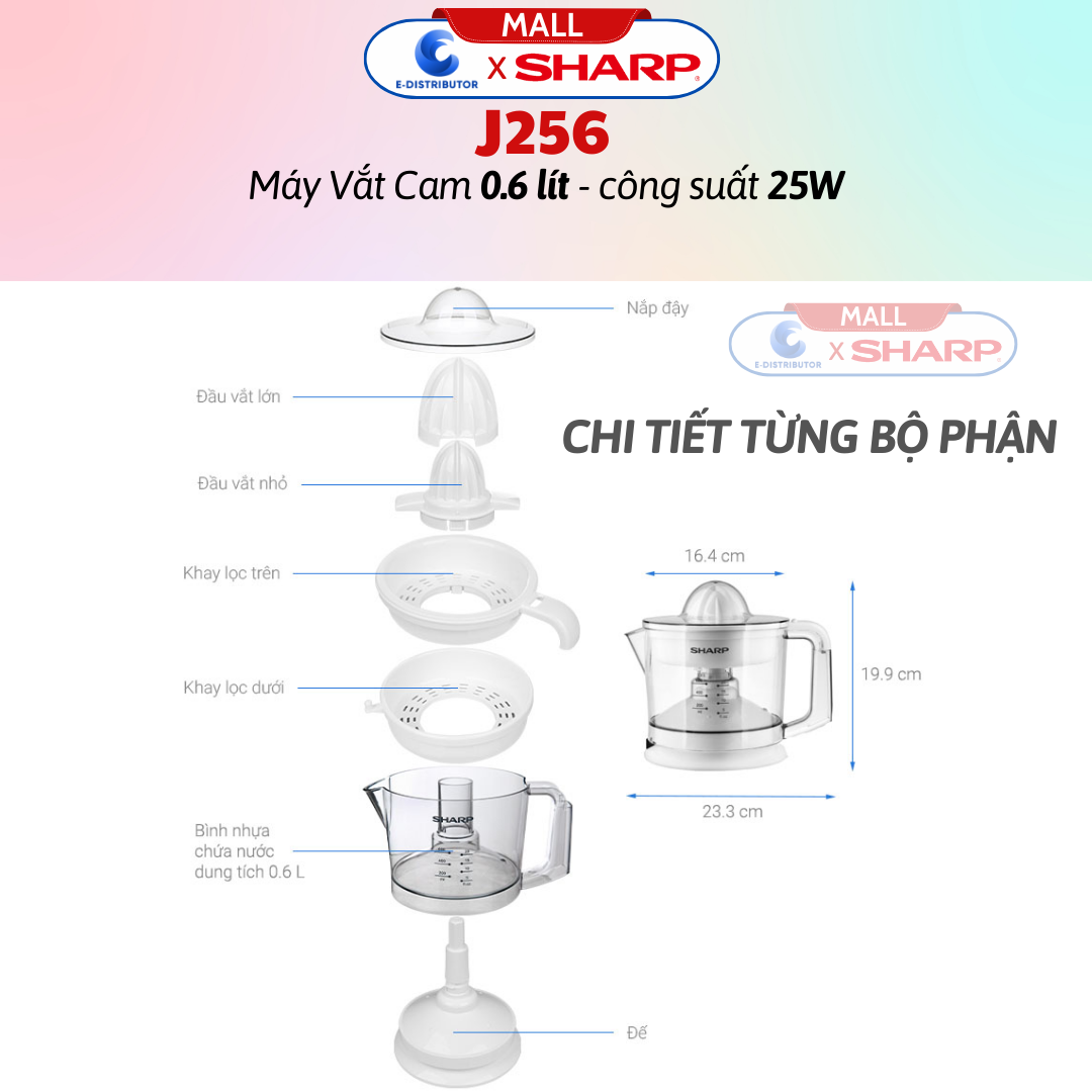 Mua tại TiktokMÔ TẢ SẢN PHẨM 1*Thông số kỹ thuật Máy vắt cam Sharp công suất 25W / EJ-J256-WH