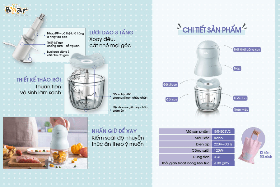 Máy Xay Ăn Dặm Bear 0.3L GR-B03V2 Bản Quốc Tế Bảo Hành 18 Tháng