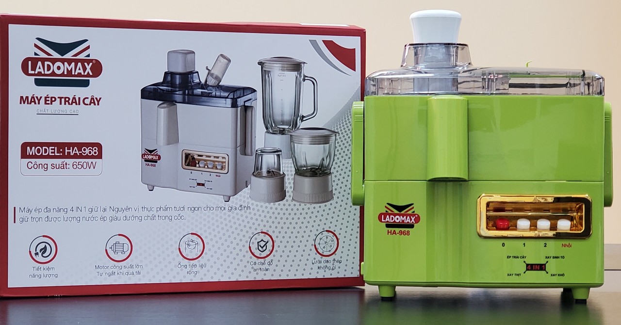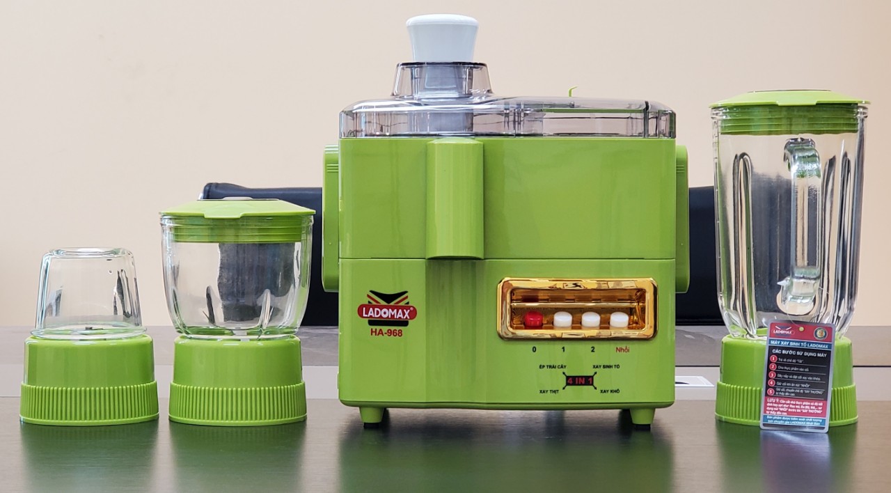 Máy xay đa năng Ladomax có nhiều cối riêng để xay sinh tố, thịt, xay tỏi và ép trái cây | HA-968