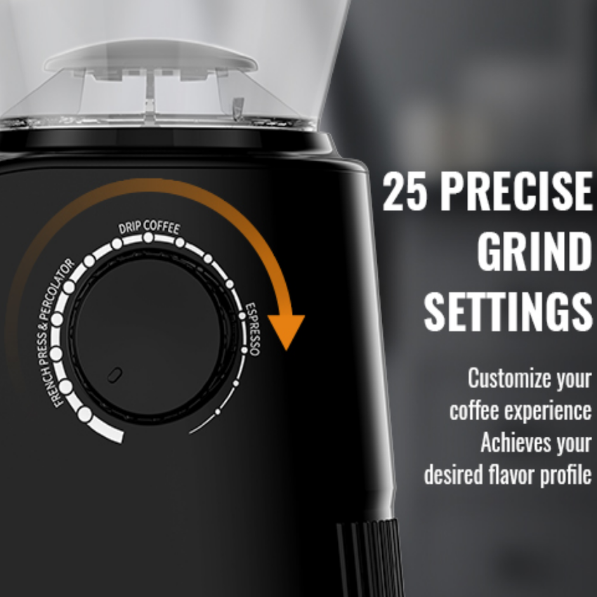 - Tích hợp 25 chế độ xay hạt cà phê