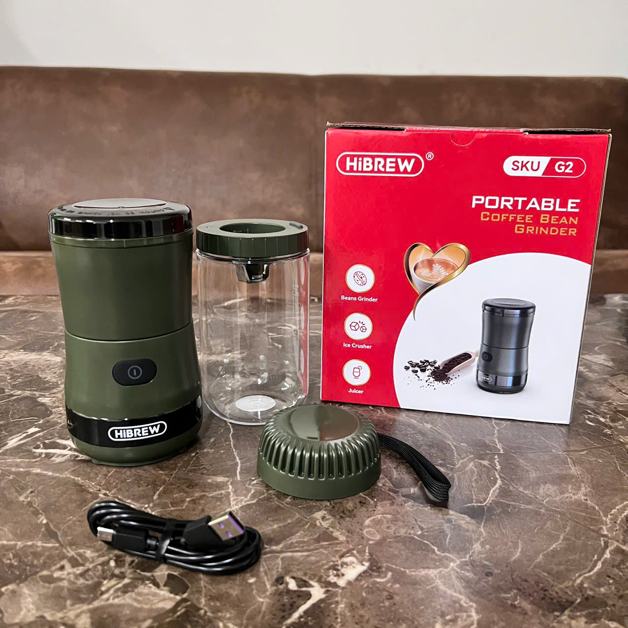 ✨Máy xay hạt cà phê, sinh tố và đá viên dùng pin cầm tay 3 trong 1 đa năng. Thương hiệu Mỹ cao cấp HiBREW - G2. Hàng chính hãng