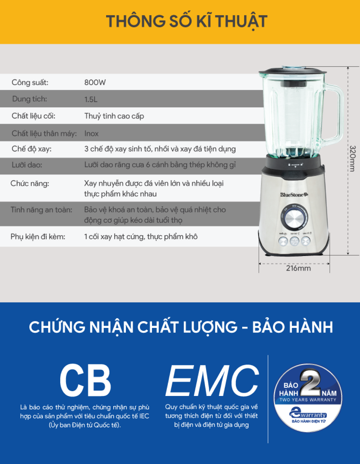 ✨Máy Xay Sinh Tố BlueStone BLB-5339 (1.5 Lít) - Hàng chính hãng